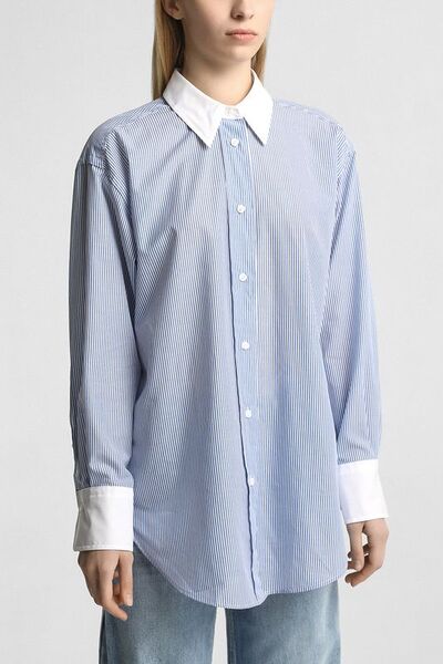 Рубашка хлопковая в полоску свободного кроя Boss by Hugo Boss 7069749 (голубой, lpn29250016)