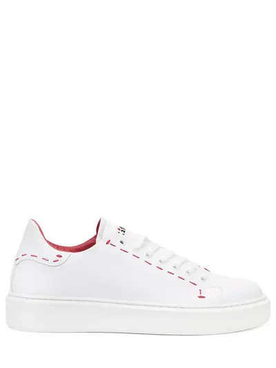 -Классическая форма, толстая резиновая подошва, функциональная шнуровка, логотип на язычке, декор в виде контрастной строчки.