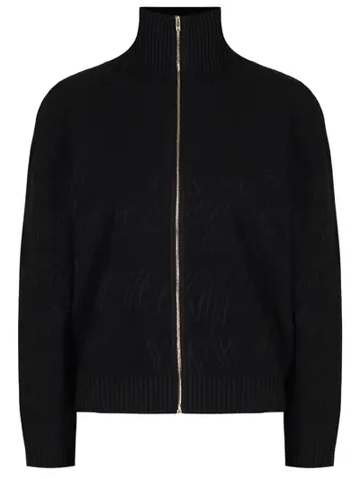 -Черный кардиган из вискозного трикотажа от AND THE BRAND. -Модель свободного силуэта со спущенной линией плеча, длинными рукавами, рельефными манжетами, поясом и высоким воротником, который можно носить как отложной, застежкой на молнию.
