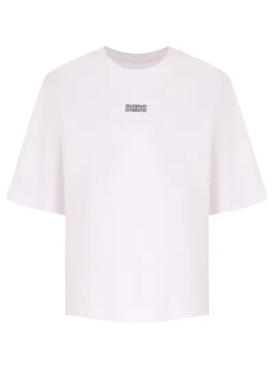 -Модель свободного кроя с короткими широкими рукавами, круглым вырезом горловины и логотипом бренда на груди.