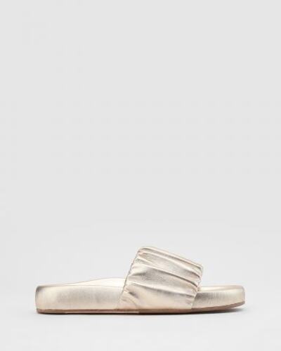 Золотистые сандалии Kennel&Schmenger станут комфортным вариантом на каждый день. Модель выполнена из натуральной кожи, на кожаной подошве. Внутри подклад и стелька также из кожи. Оригинальности дизайну добавляет сборка на передней части. Она создает объем, благодаря чему пару легко сочетать с разными фасонами одежды, в том числе с оверсайз-моделями