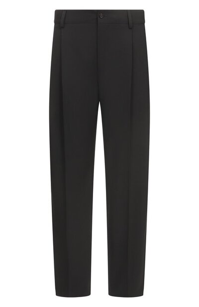 Брюки с парными защипами и отутюженными стрелками вошли в коллекцию Italian Holiday. Для пошива модели использовали эластичный габардин из шерсти первого пострига. Помимо боковых карманов, предусмотрели задние на пуговицах.