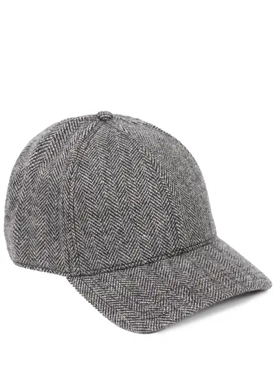 -Кепка из шерсти с узором "елочка" от STETSON. -Модель-шестиклинка с изогнутым козырьком, обтянутой ткань в тон пуговицей сверху, плотной репсовой лентой внутри, которая обеспечивает комфортную анатомическую посадку.