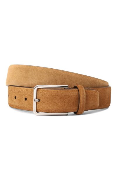 Замшевый ремень с тисненым логотипом бренда застегивается прямоугольной металлической пряжкой. Аксессуар органично дополнит и расслабленные джинсы и более строгие брюки.