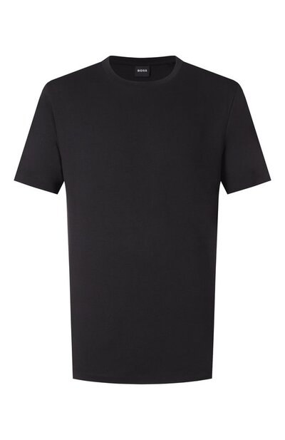 Для пошива базовой футболки H-Thompson с круглой горловиной использовали пике из лиоцелла с добавлением хлопка. По бокам предусмотрели разрезы, над одним из которых – этикетка с логотипом марки.