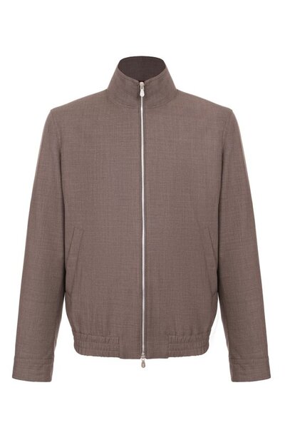Бомбер с подкладом из водоотталкивающего нейлона сшили из шерсти первого пострига с внутренней мембраной. У куртки с воротником-стойкой предусмотрели эластичный пояс и регулируемые манжеты на кнопках. Модель на встречной молнии дополнили боковыми карманами, а также двумя внутренними и слотом для ручки.