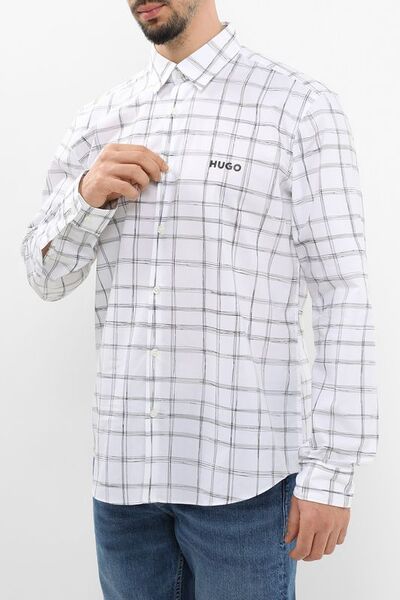 Рубашка хлопковая в клетку с карманом Hugo 7323736 (белый, lpn29287868)