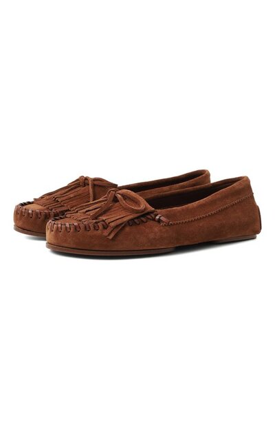 Лоферы Indiana в стиле вестерн выполнены из замши. Круглый мыс подчеркнут кожаным шнуром в тон. Модель с гибкой подошвой украшена широким килтом и бантом.