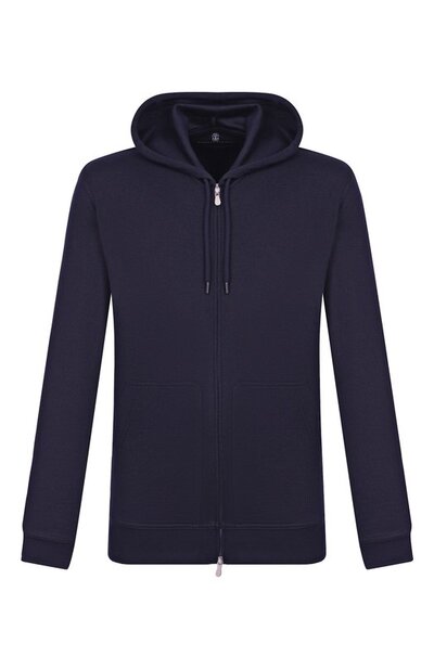 Толстовку из двойного кашемирового трикотажа с добавлением шелка оснастили регулируемым капюшоном и накладными карманами. Модель из линии Travelwear застегивается встречной молнией с выгравированной эмблемой Solomeo на пуллерах.