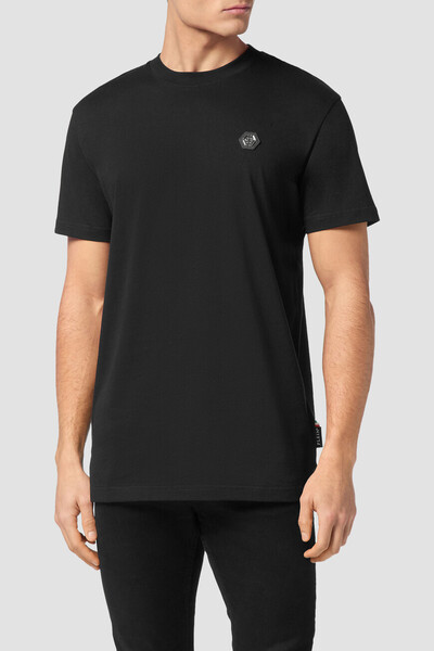 Брендированная футболка Philipp Plein станет основой Ваших повседневных образов. Для пошива модели Skull&Bones прямого силуэта выбран мягкий хлопковый трикотаж. Отличительными особенностями изделия являются отделка краёв двойной прострочкой и наличие знакового декора: нашивки-шестигранника из сафьяновой кожи PP Hexagon слева на груди и крупной вставки с черепом из искусственной замши с вышивкой и вкраплениями ярко-красной нити на спинке.