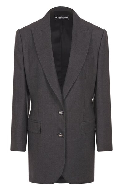 Жакет из коллекции Everyday впишется в элегантный образ с брюками и жилетом в тон. Модель с тремя карманами и высокой шлицей сшили из шерсти первого пострига, дополнив атласным подкладом. Принадлежность марке обозначили монограммой DG на пуговицах.
