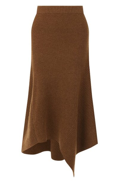 В межсезонную коллекцию вошла асимметричная юбка имбирного оттенка. Слегка расклешенную модель выполнили из фактурного трикотажа на основе тонкой шерсти и нежного кашемира (такой материал не раздражает кожу и хорошо держит форму). Наши стилисты предлагают составить монохромный образ в классической осенней палитре, дополнив ансамбль пуловером в тон.
