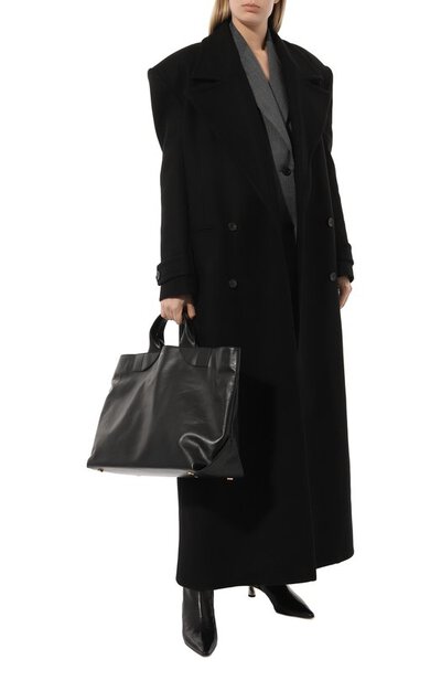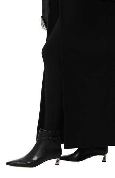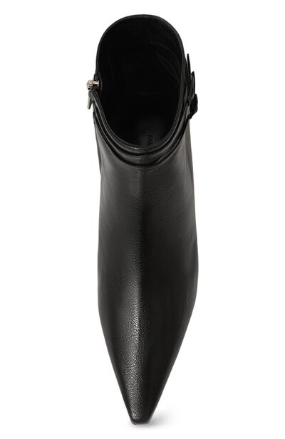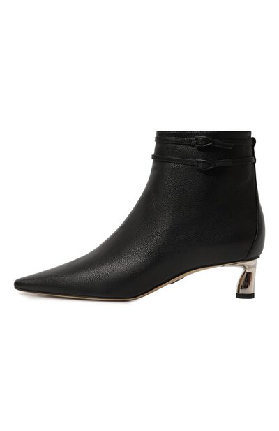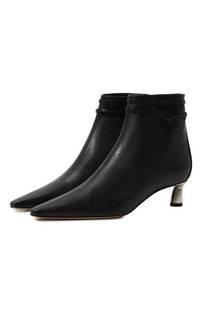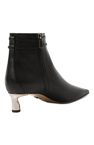 Черные ботильоны Persuasive Bootie выполнили из мягкой зернистой кожи. Чтобы подчеркнуть фактуру, модель с двумя узкими ремешками на голенище отшлифовали до легкого блеска. Акцентированно зауженному мысу Пол Эндрю противопоставил фигурный каблук kitten heel с серебристым гальваническим покрытием.