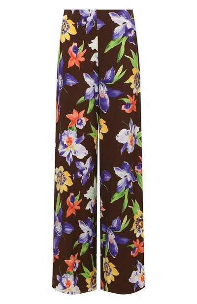 В весенне-летней коллекции Ральф Лорен обратился к архивам бренда, перенеся на легкие брюки красочный цветочный принт, как на мужских галстуках. Ретро-настроение модели из шелковистой мягкой вискозы поддерживает и слегка расклешенный крой. Такое изделие привыкло солировать в образе, но наши стилисты предлагают пойти ва-банк и подобрать ему в пару рубашку с таким же красочным узором.