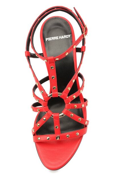 Босоножки Sunny из коллекции сезона весна-лето получились одновременно яркими и комфортными. Аргументом в пользу первого выступает насыщенный красный оттенок, глубину которого подчеркивают золотистые заклепки. На второе работают широкая перемычка, сплетенная из узких полос, и низкий знаковый для бренда каблук Gala. Для создания пары Пьер Арди выбрал мелкозернистую матовую кожу.