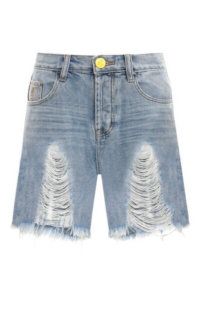 Голубые шорты выглядят так, будто их переделали из любимой пары джинсов. Иллюзию создают необработанные края с короткой бахромой. Поддерживают впечатление крупные потертости спереди и небольшие — на карманах и сзади. Для пошива модели Stevies использовали прочный деним Blue Rapture средней плотности.