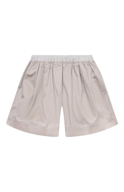 Светло-бежевые шорты сшили из мягкого хлопка, который хорошо пропускает воздух и быстро впитывает влагу, гарантируя комфорт даже в знойный день. Спортивное звучание модели придали широким поясом из эластичной ленты, как у легинсов. Жаккардовый логотип на этой детали говорит о принадлежности марке.