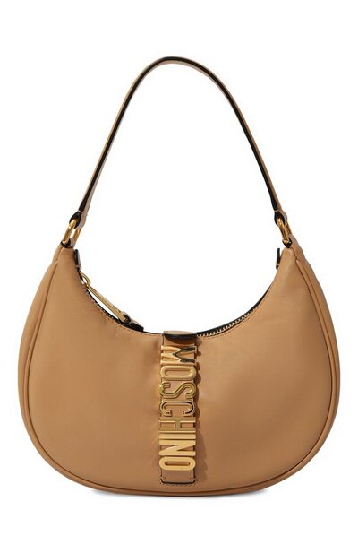Название бежевой сумке Belt дал широкий ремешок, который разместили спереди, подчеркнув его золотистым логотипом бренда. Для изготовления аксессуара мастера марки, основанной Франко Москино, использовали мягкую матовую кожу. В модель с короткой ручкой поместятся смартфон, ключи и картхолдер.