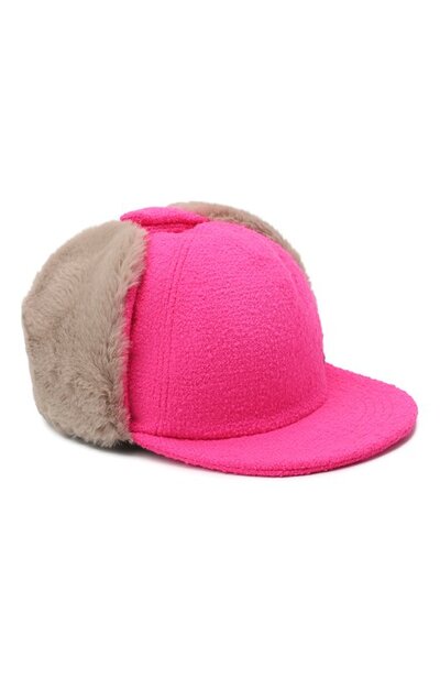 Дизайнер марки считает, что головные уборы представляют собой нечто большее, чем просто аксессуар для защиты от холода. Например, за основу этой модели взяли шапку-ушанку, а для пошива использовали не совсем характерные материалы. Изделие выполнили из неоново-розового буклированного текстиля и шелковистого искусственного меха бежевого оттенка. Рекомендуем хранить вещь в защищенном от воздуха и влаги месте.