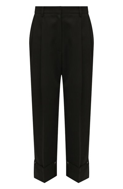 Черные брюки с широкими отворотами могут стать основой как для повседневного образа, так и для нестрогого офисного комплекта. Мастера марки выполнили модель из плотной ткани на базе мягкой шерсти и прочного полиуретанового волокна. Изделие из такого материала почти не мнется и долго сохраняет четкость стрелок.