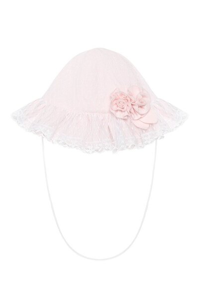Мастера марки изготовили нежно-розовую панаму из мягкого гипоаллергенного хлопка, который не раздражает кожу. Поддержать по-девичьи романтическое настроение помогут отделка из полупрозрачного ажурного кружева и объемная аппликация с цветочным мотивом.