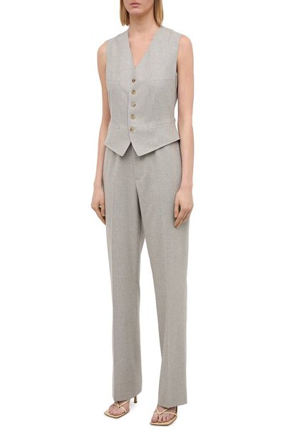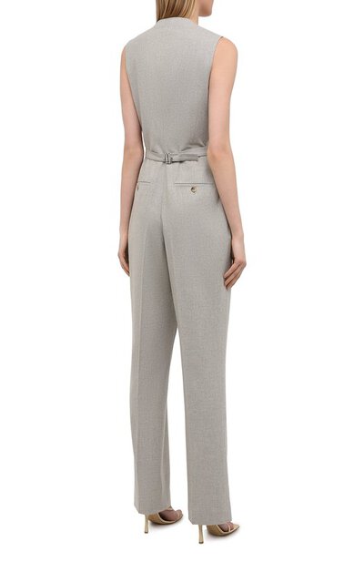 «Мне всегда нравилось, как выглядели английские джентльмены, одевавшиеся стильно и со вкусом», — говорил Ральф Лорен. Так в коллекцию сезона весна-лето дизайнер включил комбинезон, напоминающий комплект из жилета и брюк, словно позаимствованных из мужского гардероба. Для пошива модели использовали плотную фактурную шерсть, которая хорошо держит четкость линий и почти не мнется.