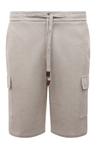Шорты-карго из плотного на вид трикотажа буквально созданы для активных прогулок под летним солнцем. Эластичный материал выполнен из микса дышащих хлопка и льна, поэтому в модели с эластичным поясом-кулиской не будет жарко. Пыльно-бежевый оттенок будет отражать лучи почти так же хорошо, как белый, а прямой крой позволит свободно двигаться.
