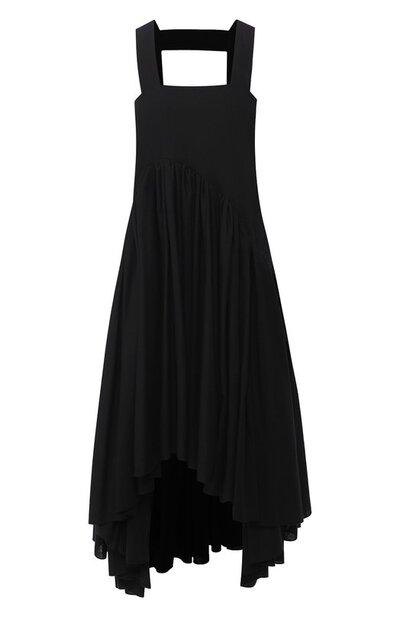 В сезоне весна-лето Джонатан Андерсон и команда Paula's Ibiza составили коллекцию из вещей для отдыха из легких натуральных тканей. Одна из них — это черное платье. Для пошива модели мастера марки, основанной Энрике Лоэве, использовали материал из смеси дышащих хлопка и льна. По линии отреза подола текстиль асимметрично задрапировали, поэтому он ниспадает частыми разными волнами, создавая летящий силуэт.