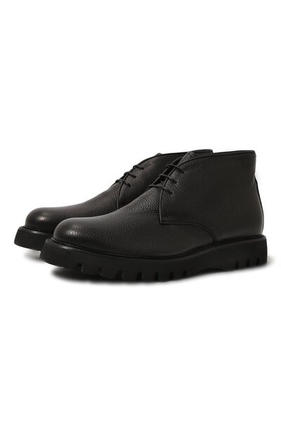 Черные ботинки сшиты вручную из мягкой зернистой кожи с легким блеском. Со временем материал покрывается благородной патиной, а изделия из него приобретают по-своему уникальный вид. Мастера марки, основанной Джоном Ричардсоном Барреттом, использовали для внутренней отделки обуви фактурную овчину с густым ворсом.