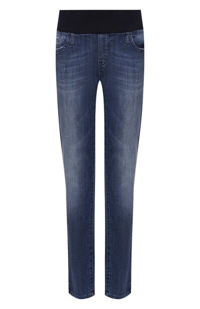 Пьетро Брунелли включил синие зауженные джинсы с декоративными потертостями в коллекцию сезона весна-лето. Модель с широким мягким поясом из эластичного трикотажа произведена мастерами бренда из стрейчевого хлопка.