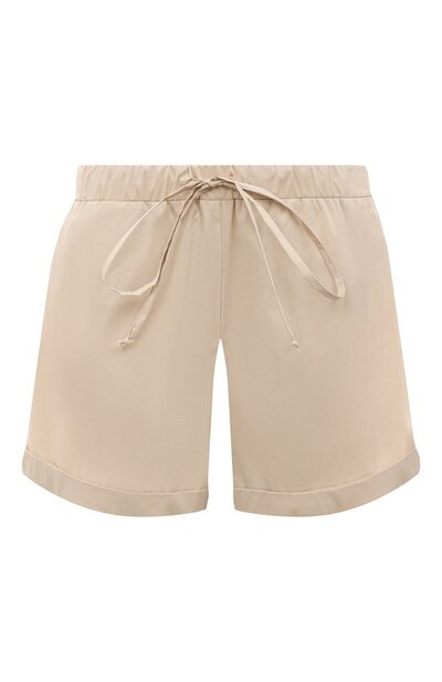 В свободных светло-бежевых шортах будет комфортно даже в жаркую погоду. За удобство отвечает мягкий тонкий хлопок, который хорошо пропускает воздух. Его дышащие волокна укрепили нейлоном. Чтобы изделие идеально садилось по фигуре, эластичный пояс сделали регулируемым, продев в кулиску длинную тесьму.