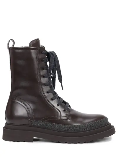 -Высокие ботинки из кожи шоколадного цвета от BRUNELLO CUCINELLI.