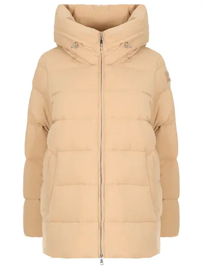 -Бежевый удлиненный стеганый пуховик купажированного состава от ADD.