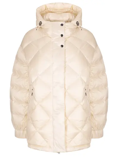 -Модель свободного кроя со спущенной линией плеча, длинными рукавами, эластичными манжетами на резинке, прорезными карманами на молниях, высоким воротником, переходящим в капюшон на кулиске, застежкой на молнию, ветрозащитной планкой на кнопках.