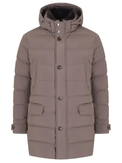 -Серый стеганый пуховик с усиленным влагостойким финишем от MOORER.