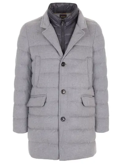 -Пуховик дополнен съемной стеганой вставкой внутри с застежкой на молнию и воротник-стойкой.