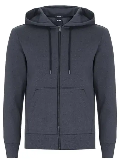 -Серая спортивная олимпийка из мерсеризованного хлопка от BOSS BLACK.