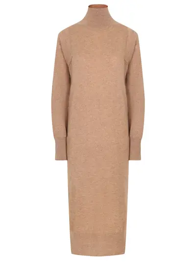 -Бежевое трикотажное платье-миди из мягкого кашемира от NOT SHY.