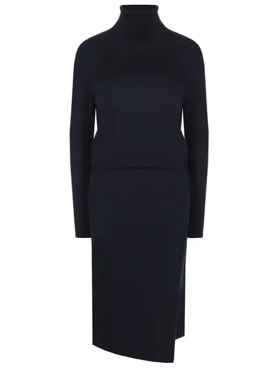 -Темно-синее трикотажное платье-миди из тонкой смесовой шерсти от LORENA ANTONIAZZI.