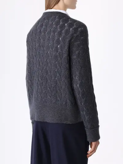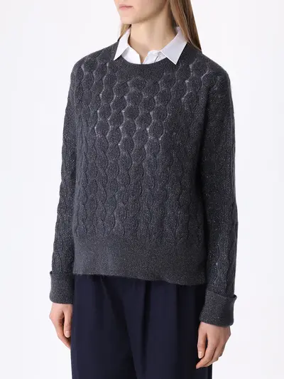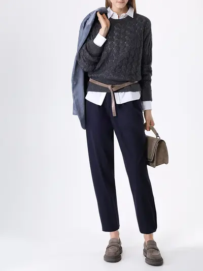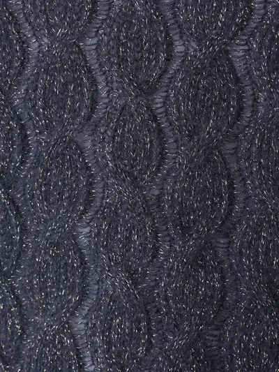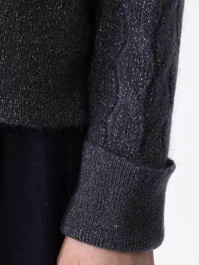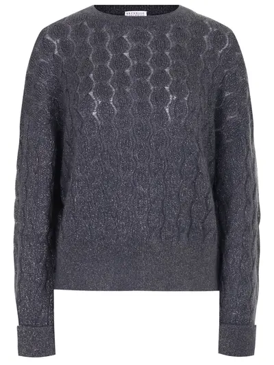 -Темно-синий вязаный джемпер из тонкой пряжи на основе мохера, расшитого мерцающей люрексной нитью, от BRUNELLO CUCINELLI.