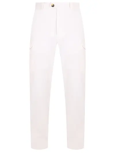 -Белые брюки-карго из фактурного хлопкового вельвета от BRUNELLO CUCINELLI.
