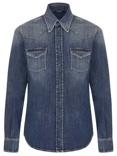 -Синяя рубашка из денима с выбеленным эффектом от DOLCE&GABBANA.