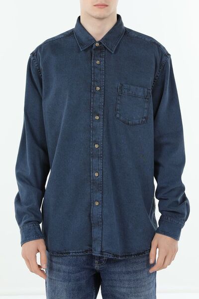 Рубашка джинсовая с карманом Boss by Hugo Boss 6649215 (синий, lpn29368198)