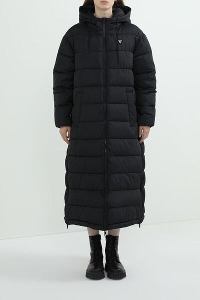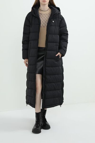 Пуховик удлиненного кроя с капюшоном Guess 7110315 (чёрный, lpn29379384)