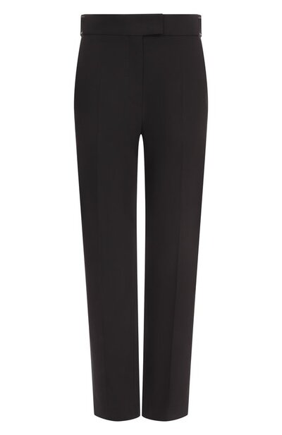 Брюки cigarette выполнили из слегка эластичного хлопкового твила и дополнили двумя парами прорезных карманов. Пояс украсили вышивкой фирменными цепочками мониль по бокам.