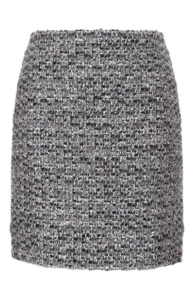 Мини-юбку с потайной молнией сбоку сшили из смесового твида на основе шерсти и полиэстера с добавлением металлизированных нитей. Наши стилисты предлагают носить модель с парным жакетом.
