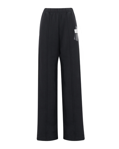 Эти брюки от MM6 представляют собой идеальное воплощение современного стиля с элементами уличной моды. Изготовленные из качественного материала, они обеспечивают комфорт и свободу движений, оставаясь при этом в тренде. Свободный силуэт и высокая посадка создают визуальный эффект удлинения ног, добавляя изящества и динамичности. Эластичный пояс обеспечивает удобную посадку, не нарушая лаконичности дизайна. Широкие вертикальные швы по всей длине брюк добавляют структурность и визуальный интерес, делая их особенно привлекательными. Фирменная нашивка, выполненная в контрастных цветах, служит стильной деталью, придающей индивидуальность и подчёркивающей принадлежность к бренду. Эти брюки идеально подходят как для повседневной носки, так и для более формальных случаев, легко комбинируясь с различными элементами гардероба — от уютных свитеров до строгих рубашек. Они станут основой для создания множества модных образов, добавляя им нотку изысканности и актуальности.
