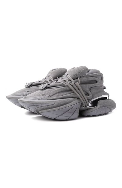 Кроссовки Unicorn из меланжевого флиса выглядят футуристично благодаря объемным фигурным накладкам и массивной резиновой подошве с эффектом воздушной подушки. Пару с неопреновой внутренней отделкой и кожаной стелькой украсили фирменной декоративной пуговицей Lion Chain.