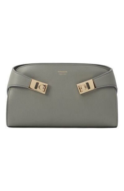 Сумку Hug из анилиновой телячьей кожи дополнили двумя ремешками с фирменными пряжками Gancio, регулирующими объем. Аксессуар с карточными слотами внутри украсил фольгированным логотипом. В комплекте — плечевой ремень.
