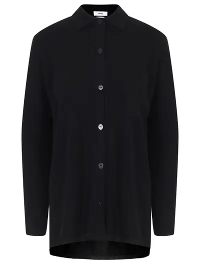 -Черная рубашка из мягкого кашемира от NOT SHY. -Модель свободного силуэта со спущенной линией плеча, длинными рукавами с рельефом, отложным воротником, нагрудным накладным карманом, застежкой на пуговицы.